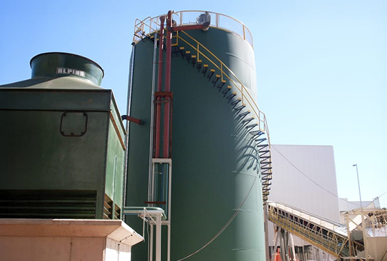 Almacenamiento de productos químicos utilizados en el tratamiento de la celulosa.